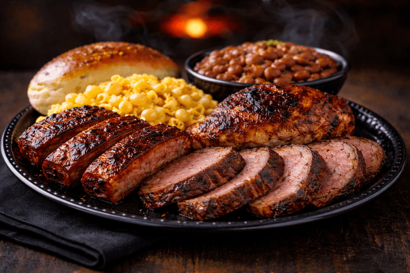 Hand-sliced Santa Maria tri-tip with signature seasoning, served with baked beans, mac & cheese, and a dinner roll.